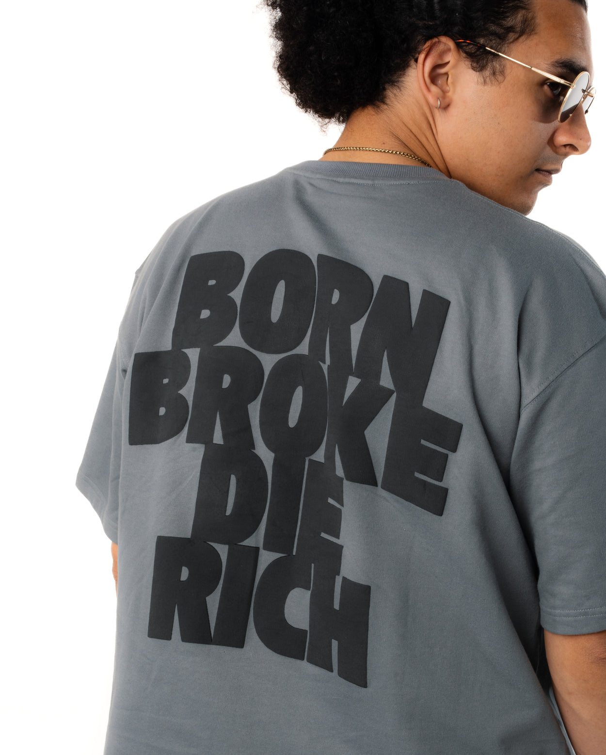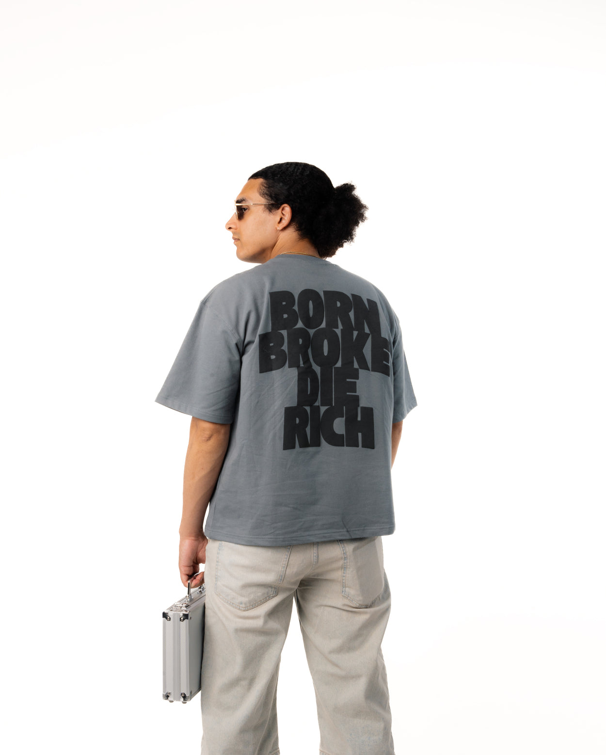 The back says: “BORN BROKE, DIE RICH” — and it doesn’t just mean money. It means to level up in every way — mindset, energy, legacy.